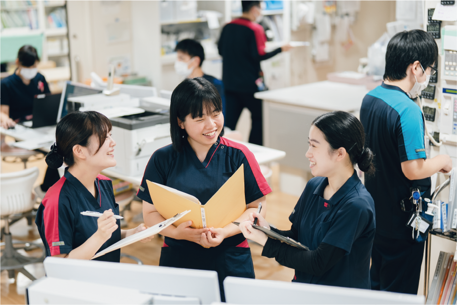 高齢化や精神疾患の多様化、在宅医療への移行など精神科医療が進化する中、患者さんの「こころ」「からだ」「くらし」を理解し、個別性・専門性の高いヘルスケアサービスを展開しています。知識と経験を統合させた専門性の高い看護実践を修得するために、精神科特有の教育プログラムも導入し、充実した院内教育研修を行っています。
