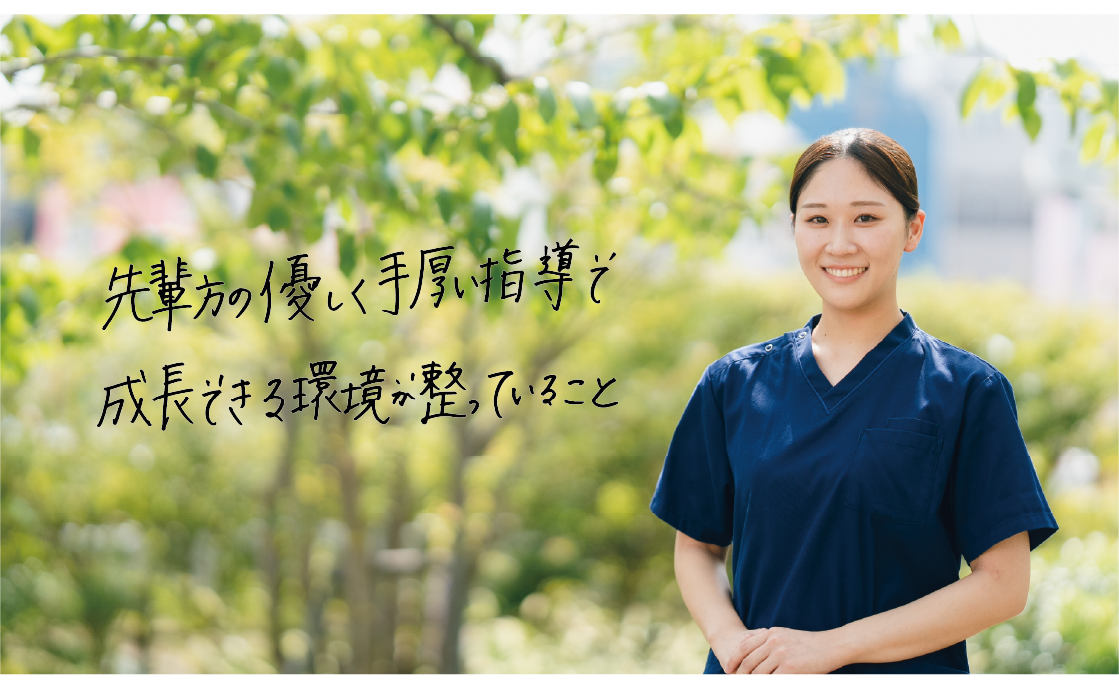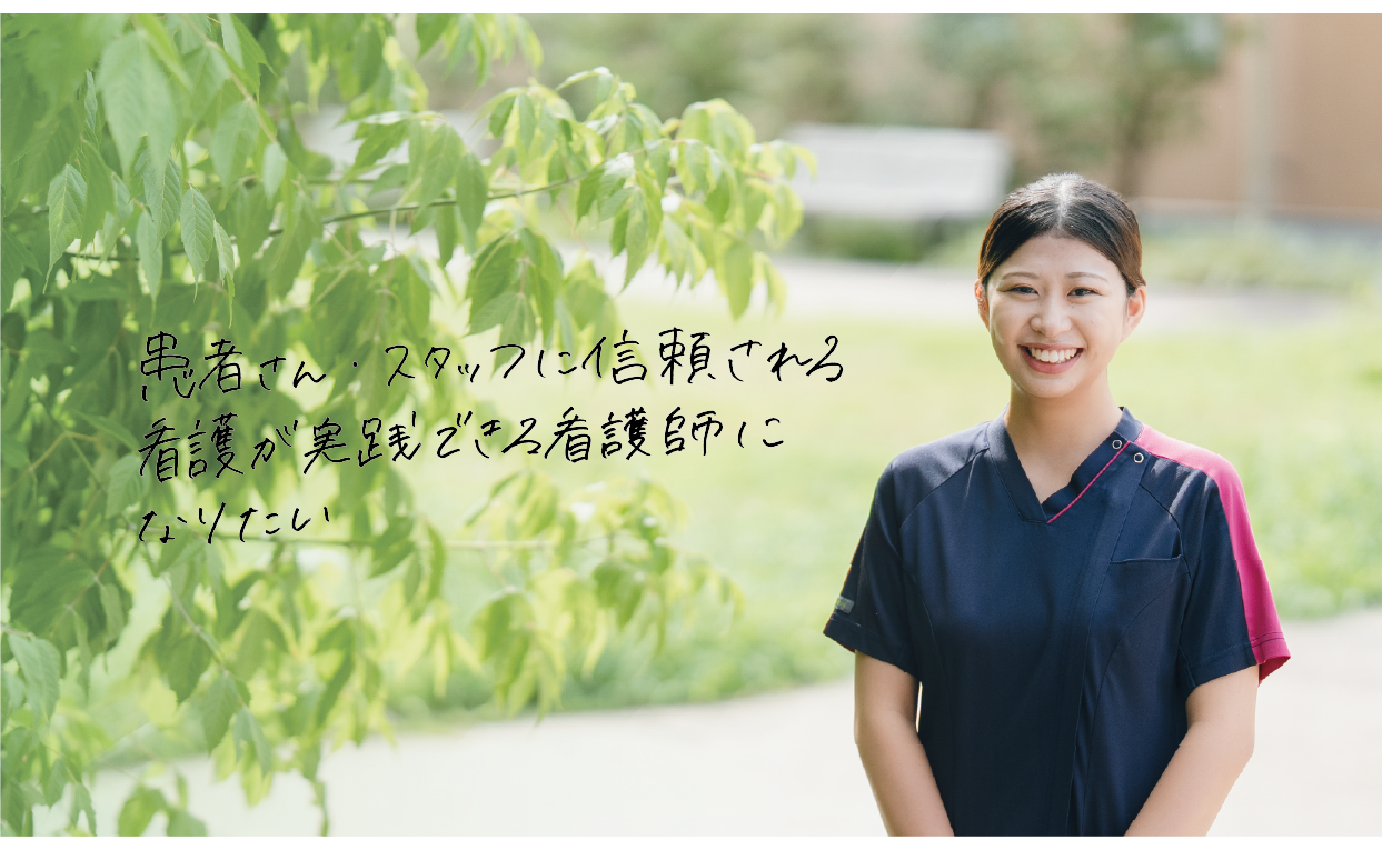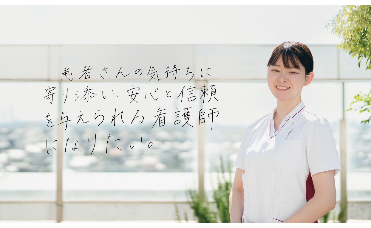 実習やインターンシップを通じ、多忙の中でも患者さんに笑顔で丁寧に接する姿に魅力を感じ、この病院を志望しました。超急性期から終末期まで幅広い看護を学べる環境があり、先輩方の温かいサポートのもとで安心して成長できます。患者さんからいただく感謝の言葉や回復していく姿は大きな励みとなり、知識と経験を重ねながら、安心と信頼を与えられる看護師を目指しています。