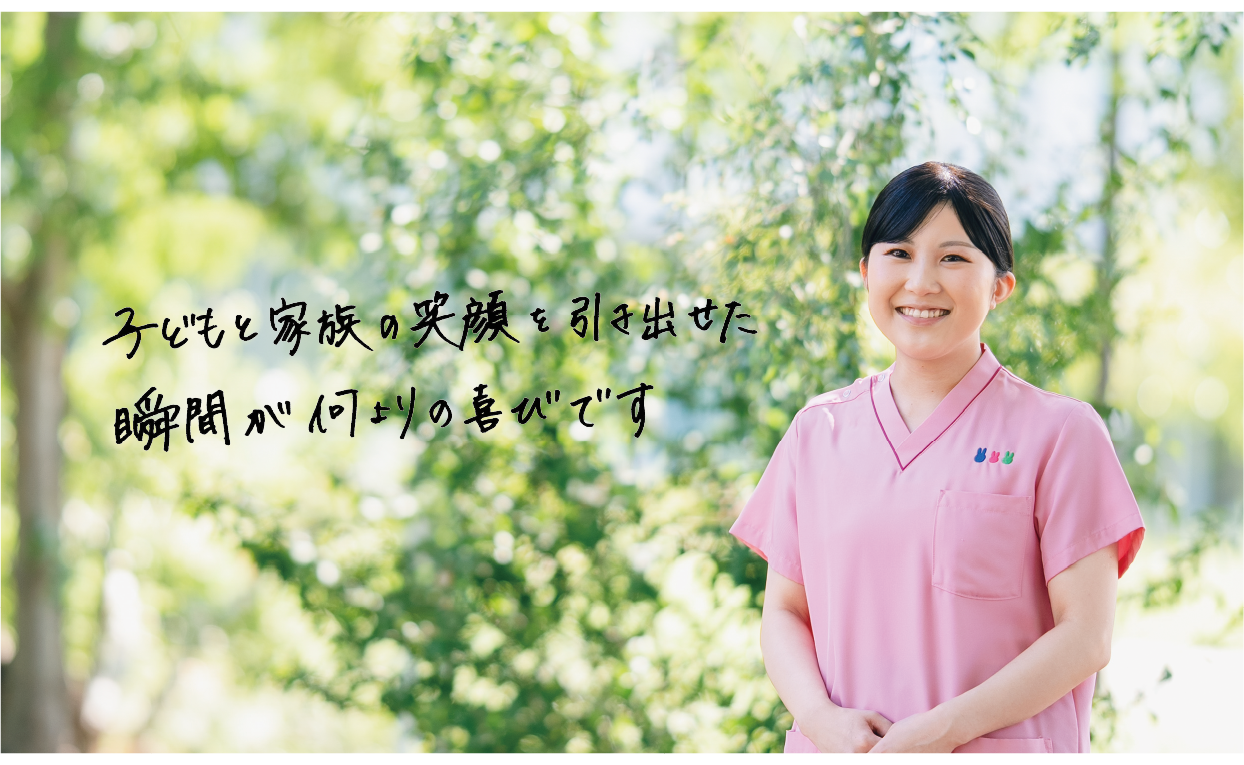 学生時代の実習で先輩看護師が子どもと家族に寄り添う姿に感銘を受け、小児看護に携わりたいという思いから入職しました。子どもたちの小さな成長や笑顔に触れ、家族とともにその瞬間を喜べることが大きなやりがいです。ペアで学べる体制や丁寧なサポートがあり、安心して成長できる環境も魅力です。退院後の生活まで視野に入れ、その子らしさを大切にした看護を実践できる看護師を目指しています。