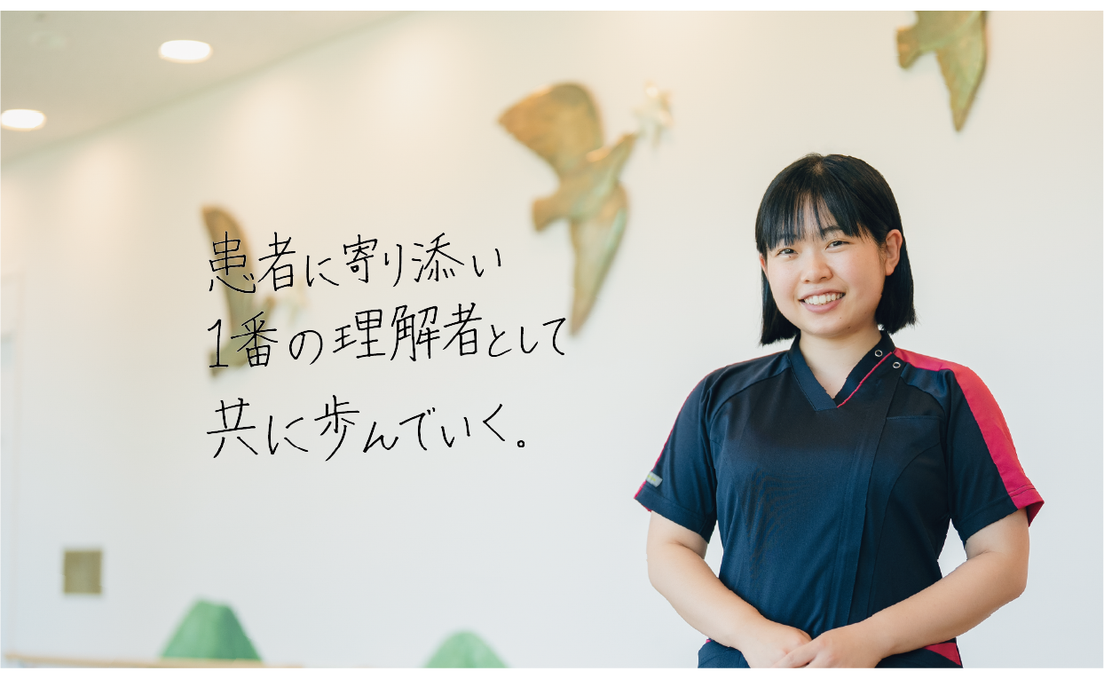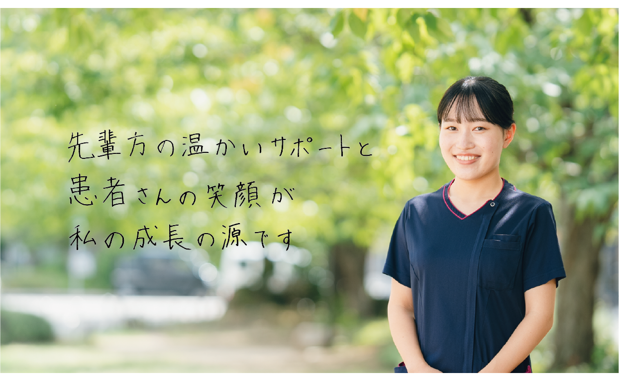 充実した教育体制やPNSの支援の中で、一つひとつ学びを積み重ね、確かな成長を実感しています。地域の方々の健康を支えることや、患者さんからの「ありがとう」の言葉は大きなやりがいです。温かい先輩方に支えられ、安心して挑戦できる環境で、知識や技術を磨きながら、患者さんやスタッフから信頼される看護師を目指し、日々努力しています。