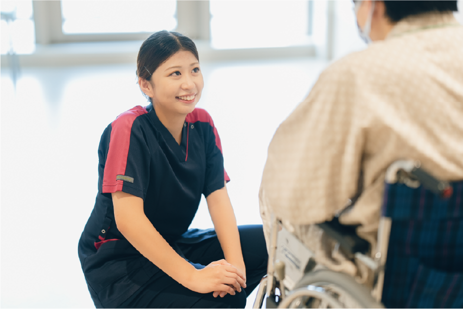 丹波圏域の中核病院として地域の方々の「いのち」と「健康」と「くらし」を守る看護を行っています。隣接する丹波市健康センターや地域の支援者と強く連携し、患者さんを中心としたチーム医療で、生命の誕生から、予防医療、ターミナル期に至るまで、人のあらゆる発達・健康段階に丁寧に関り、こころに響く看護を提供しています。
